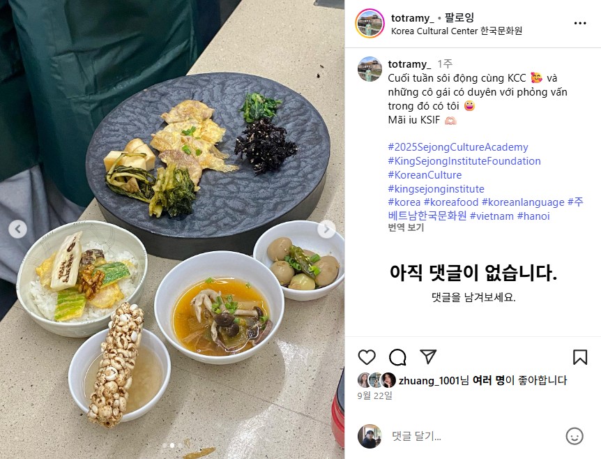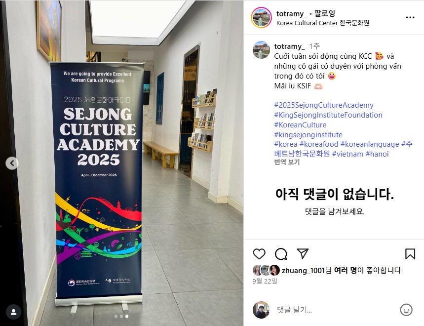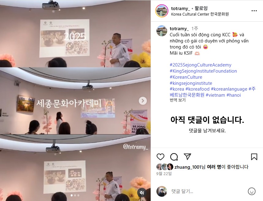 베트남 주베트남한국문화원 세종학당 일정2025.09.20 ~ 2025.09.22 인스타그램 : @totramy_ https://www.instagram.com/p/DO5ETfNkSBP/?utm_source=ig_web_copy_link 댓글 0댓글쓰기 댓글목록 등록된 댓글이 없습니다. 이전글 가오슝 세종학당 다음글 파트나 세종학당 목록