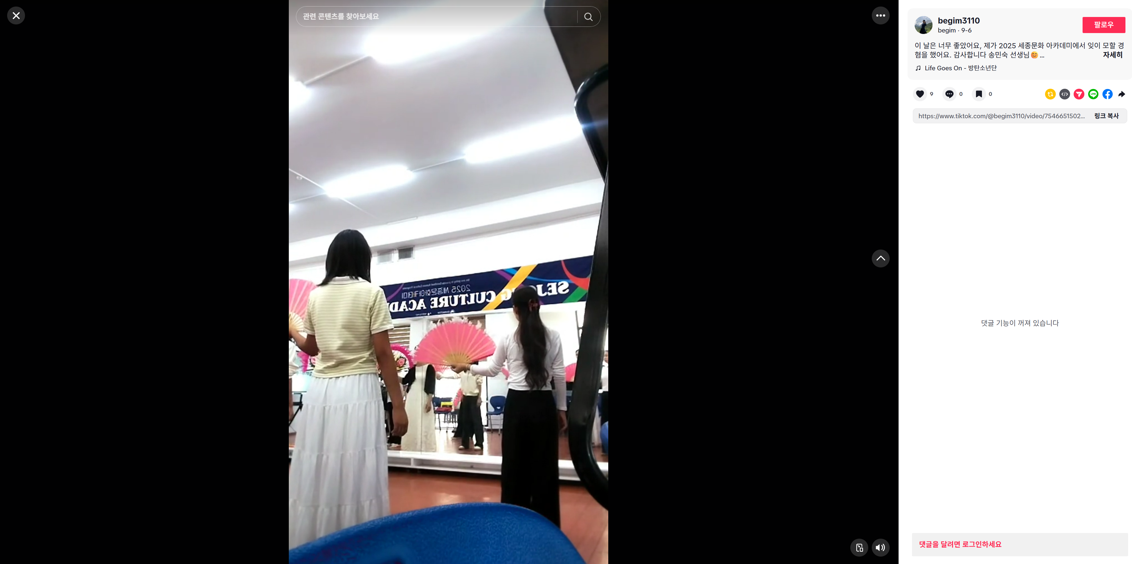 키르키즈공화국 오시2 세종학당 일정2025.09.03.~2025.09.05. TIK TOK : @begim3110 https://vt.tiktok.com/ZSAcLYDgu/?_ia=1lc3covfozcawE 댓글 0댓글쓰기 댓글목록 등록된 댓글이 없습니다. 이전글 자카르타 세종학당 다음글 주뉴질랜드대사관 목록