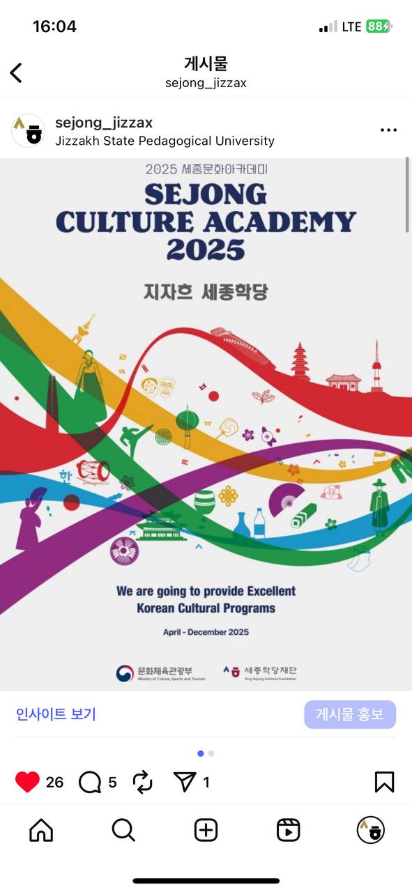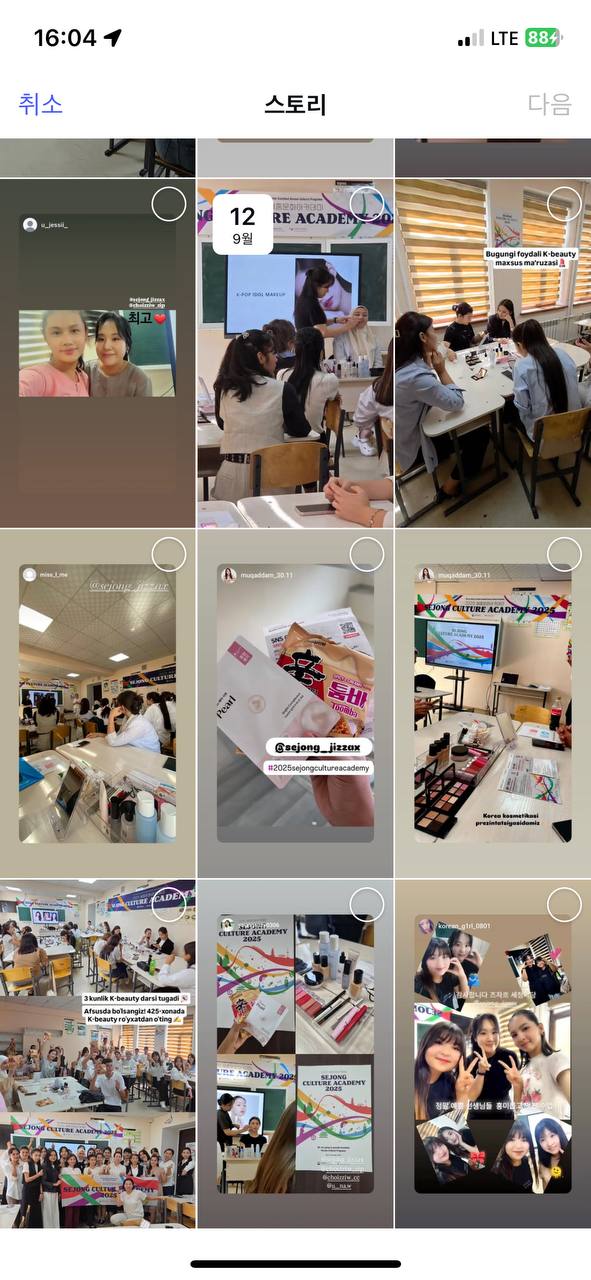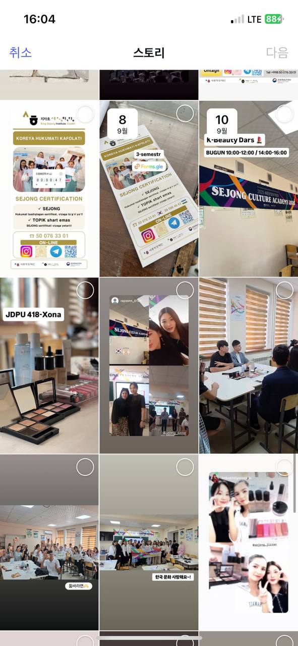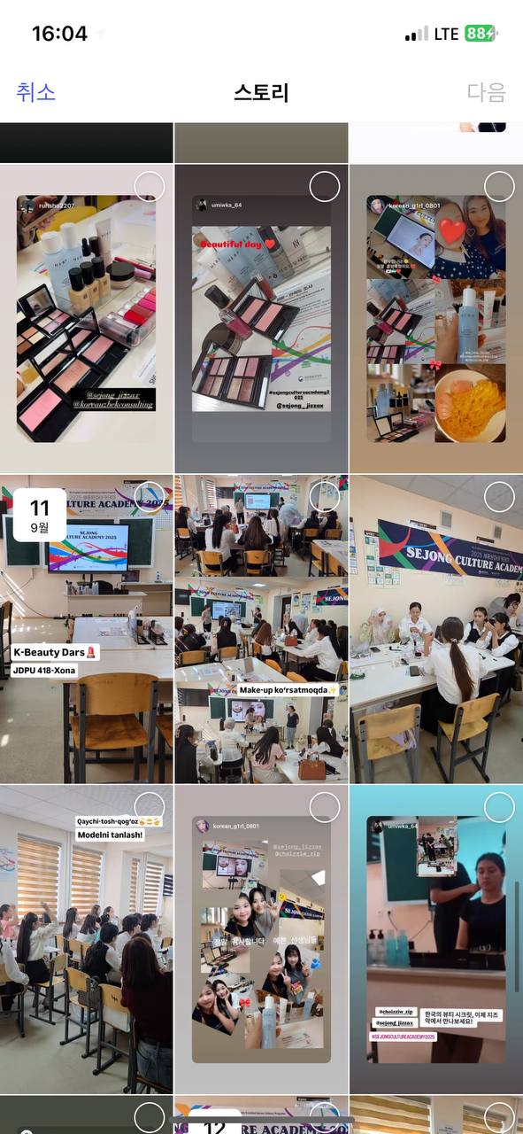 [지자흐 세종학당] 세종문화아카데미 K-뷰티 강좌 개최 등록일2025.09.25 조회수42 댓글 0댓글쓰기 댓글목록 등록된 댓글이 없습니다. 이전글 [안타나나리보 세종학당] 세종문화아카데미 K-뷰티 강좌 개최 다음글 [어바인 세종학당] 세종문화아카데미 전통공예 강좌 개최 #2 목록