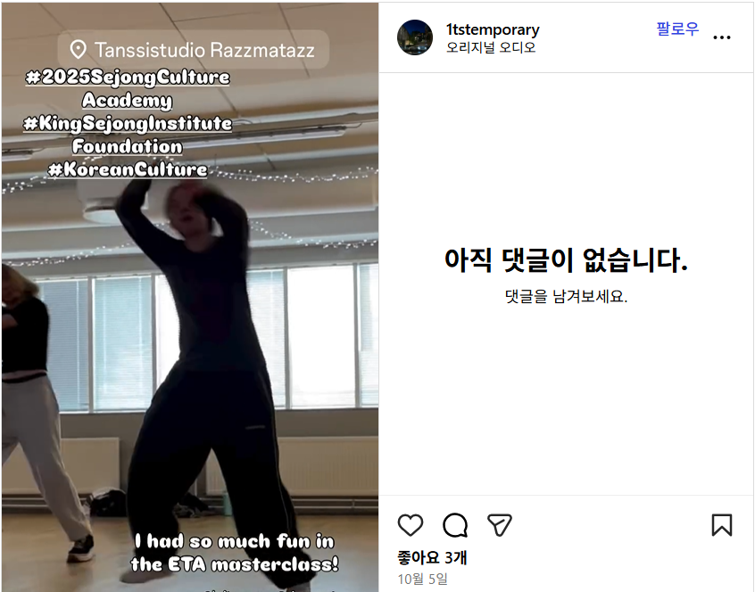 핀란드 탐페레 세종학당 일정2025.10.03~2025.10.05 https://www.instagram.com/reel/DPZRwBwDB7N/?igsh=cWR6dWFjaWx4bzls 댓글 0댓글쓰기 댓글목록 등록된 댓글이 없습니다. 이전글 블루밍턴 세종학당 다음글 주블라디보스톡총영사관 목록