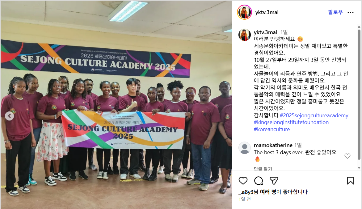 케냐 나이로비 세종학당 일정2025.10.27.~2025.10.29 https://www.instagram.com/p/DQr_tU3DQcE/?igsh=enZ3d2p2b3NvdXQ2&img_ind… 댓글 0댓글쓰기 댓글목록 등록된 댓글이 없습니다. 이전글 주몬트리올총영사관 & 맥길대학교 동아시아센터 다음글 로웰 고등학교 목록