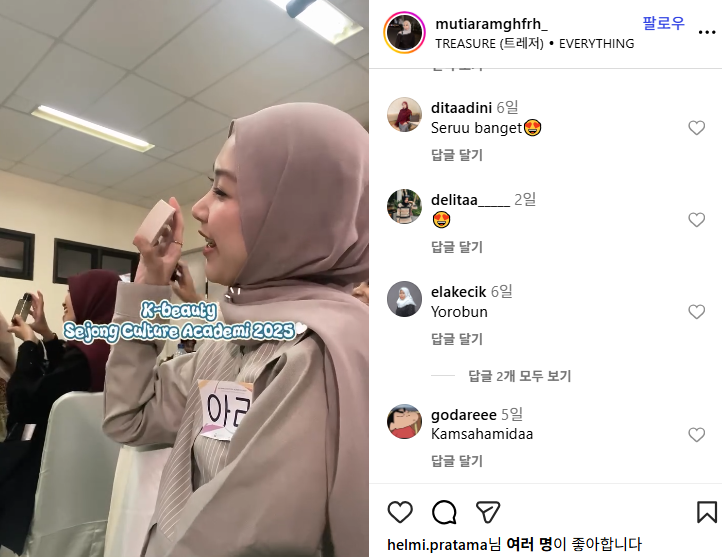인도네시아 반다아체 세종학당 일정2025.11.04 ~ 2025.11.06 인스타 : mutiaramghfrh_ https://www.instagram.com/reel/DQxz4ghj0jq/?igsh=aWl0ZDl5amNxeXhr 댓글 0댓글쓰기 댓글목록 등록된 댓글이 없습니다. 이전글 이전 글이 없습니다. 다음글 휴스턴대학 힐튼칼리지 목록